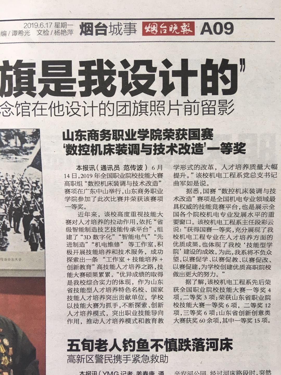 6月14日,2019年全国职业院校技能大赛高职组“数控机床装调与技术改造”赛项在广东中山举行,山东商务职业学院参加了此次比赛并荣获该赛项-等奖。