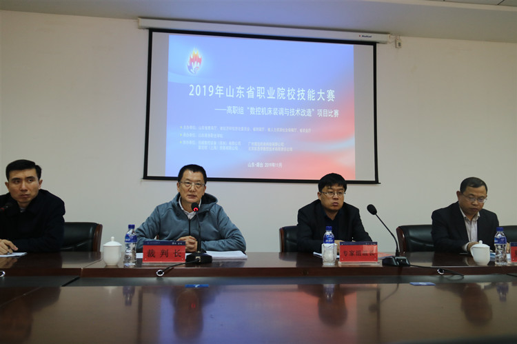 11月12日至15日,2019年山东省职业院校技能大赛高职组“数控机床装调与技术改造”赛项在我校举行。经过激烈比拼,由我校机电工程系林芸、汤受鹏两位老师指导,杨涛、张世强、刘子涵三位同学组成的代表队凭借出色发挥,喜获省赛一等奖第一名。
