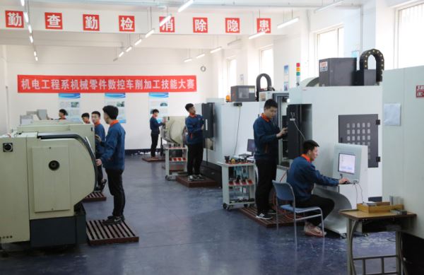 数控实训车间是机电工程系学生完成数控技术课程实践性教学和数控机床操作的重要场所。主要适应于机械制造与自动化、机电一体化、数控技术等专业的数控编程与加工、数控加工工艺、数控故障诊断与维修等课程的实训任务,用于培养学生具备较强机械产品设计与制造、计算机辅助设计、数控操作与编程等多方面工作能力的技术技能型人才。