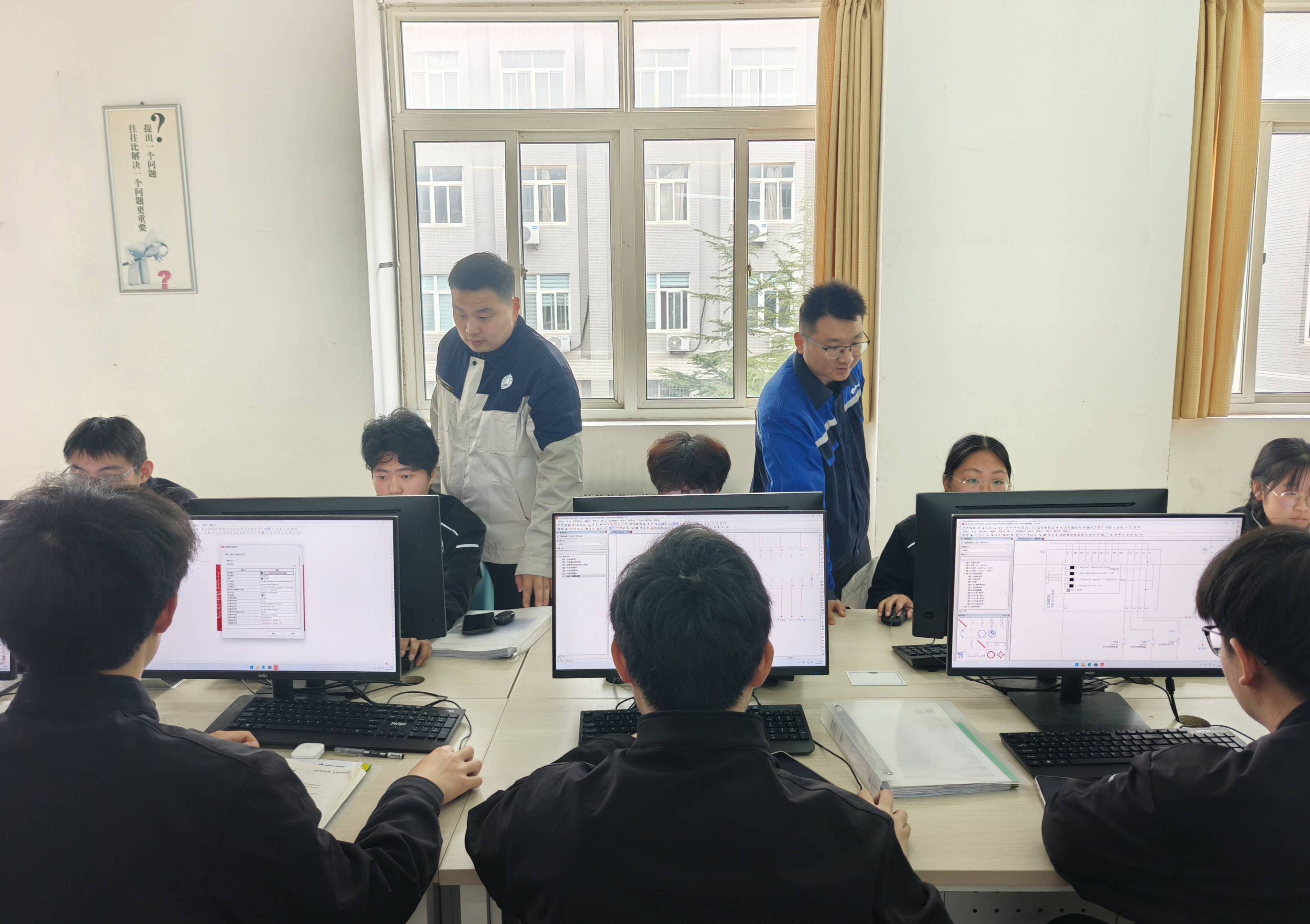 近日,山东商务职业学院智能制造学院为期两周的电气绘图专项实训顺利落下帷幕。本次实训深度践行引企入校、产教融合的理念,创新采用“企业资深工程师+校内骨干教师”双导师联合授课模式,以EPLAN电气设计绘图全流程为核心,将工业一线真实项目完整搬进课堂,让学生以“准工程师”身份全程参与工程实践,真正实现了从书本理论到岗位实操的能力跨越。
