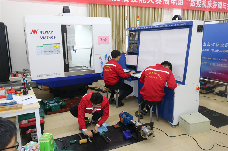 11月12日至15日,2019年山东省职业院校技能大赛高职组“数控机床装调与技术改造”赛项在我校举行。经过激烈比拼,由我校机电工程系林芸、汤受鹏两位老师指导,杨涛、张世强、刘子涵三位同学组成的代表队凭借出色发挥,喜获省赛一等奖第一名。