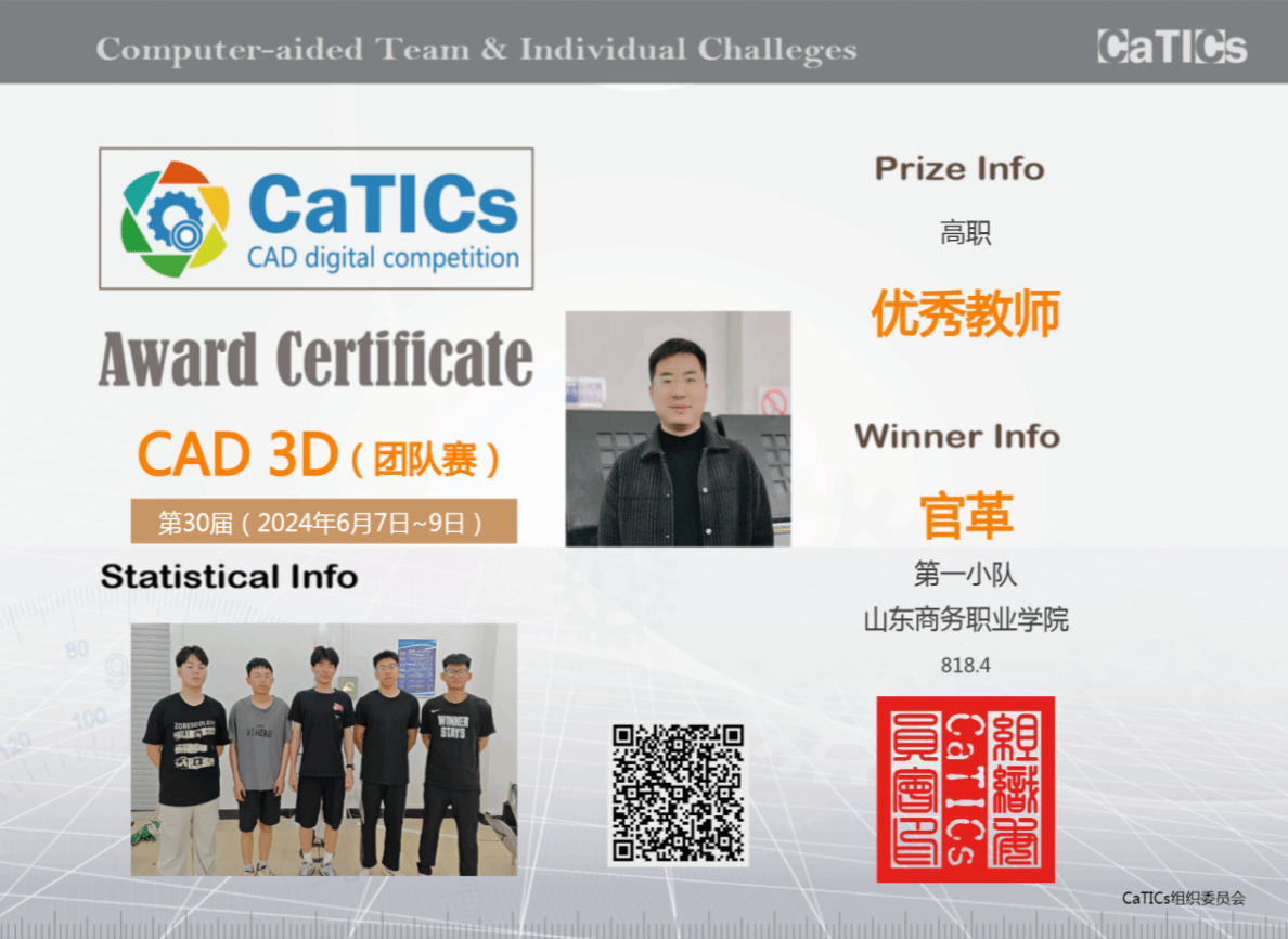 于建成,毕业于山东商务职业学院机械制造及自动化专业,在校期间凭借扎实的专业功底和出色的实践能力,荣获山东省职业院校技能大赛一等奖,展现出卓越的技术素养。现就职于山东商务职业学院担任教师一职,2018年参加中国技能大赛-第二届全国智能制造比赛获得国赛二等奖,2018年、2019年指导学生参加山东省职业院校技能大赛“复杂部件数控多轴联动加工技术”二等奖,2021年指导学生参加山东省职业院校技能大赛“工业设计技术”一等奖,2023 年参加全国职业院校技能大赛高职组“数控多轴加工技术”二等奖,为学生的成长成才贡献着自己的力量。
