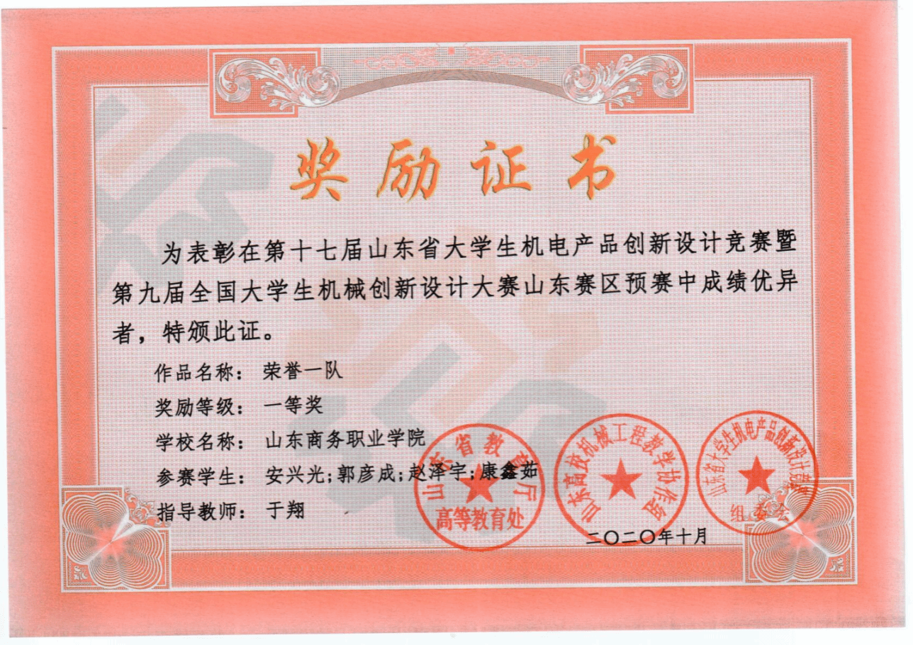 第十七届山东省大学生机电产品创新设计竞赛一等奖