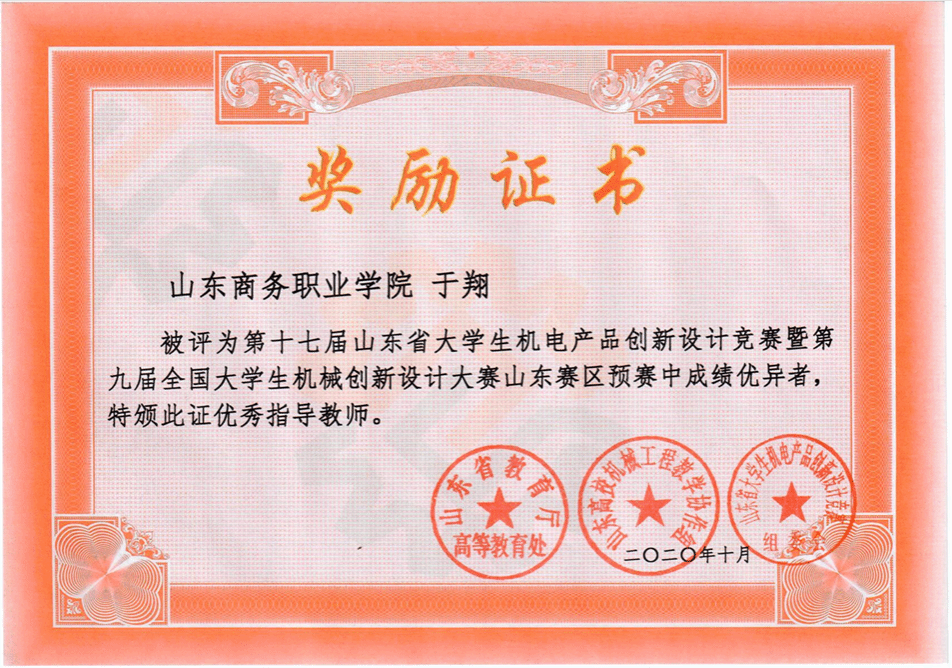 山东省“大学生机电产品创新设计”竞赛项目优秀指导教师