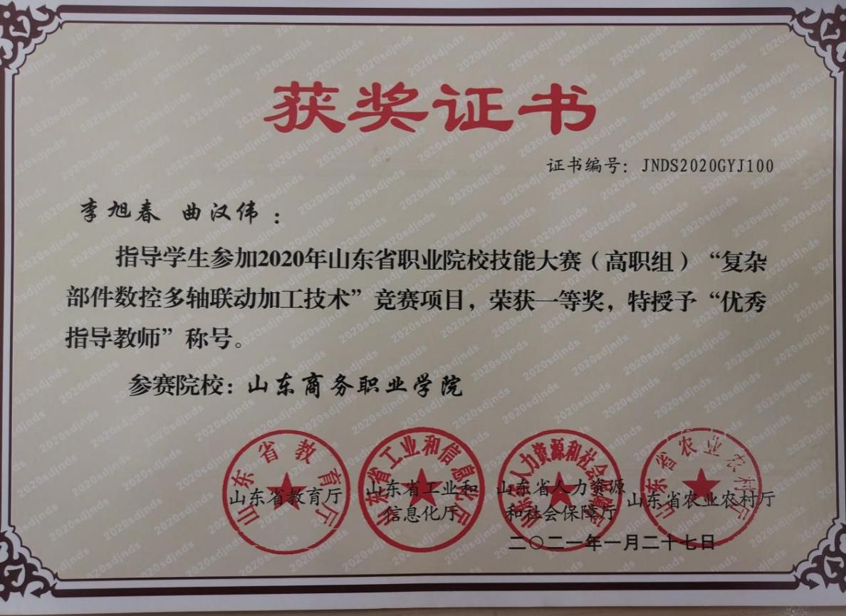 山东省“复杂部件数控多轴联动加工技术”竞赛项目优秀指导教师