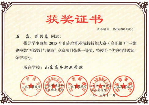 山东省“三维建模数字化设计与制造”竞赛项目优秀指导教师