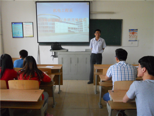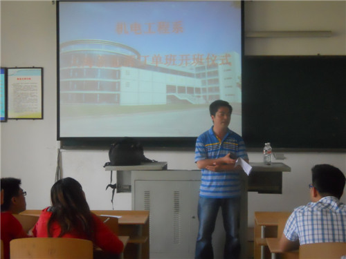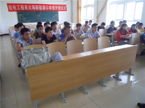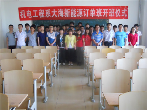 该订单班的培养对象采取学生自愿报名、院系把关、大海新能源公司面试相结合的方式进行选拔。仪式上,刘凯老师首先对进入订单班的同学表示祝贺,对合作企业对系部人才培养工作的支持与关心表示感谢,接着企业领导对接下来订单班的课程安排做了总体部署,并希望同学们能高度发扬吃苦耐劳精神、尽快融入订单班学习中,希望同学们在今后的学习和工作中按照要求严格要求自己。