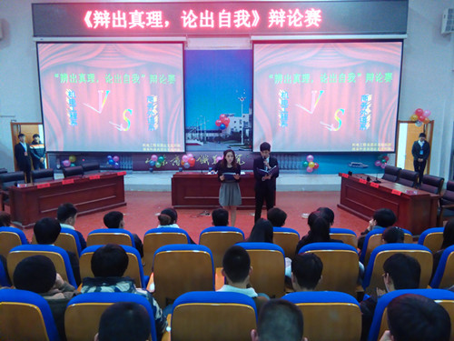 为丰富同学们的课余文化生活,培养学生的语言表达能力和应变能力,展示大学生良好的精神风貌,12月16日晚上6:40,由机电工程系组织部与商务外语系组织部联合举办的“辨出真理,论出自我”主题辩论赛在图书馆报告厅成功举办。比赛邀请两系学生会主席与团总支副书记出席并担任此次比赛评委。