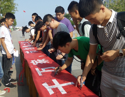 为呼吁我院学生进一步关心水资源问题,了解水资源的重要性,提高对节约用水认识。由机电工程系宣传部组织开展,以“惜水、爱水、节水,从我做起”的节约用水主题签字活动于6月26日下午4:00在中心大道成功举办。