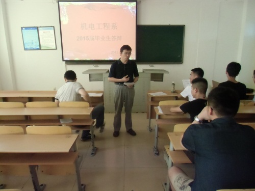 为响应学院号召,进一步了解2015届毕业生的学习、工作及发展状况。7月4日上午,机电工程系2015届毕业设计(实习)答辩会工作分别在2A教学楼和实训楼多个教室共同开展。系部党委副书记王强、副主任文洪莉、辅导员刘凯、周海林、徐同来、李延涛以及论文指导教师、12级班主任、全体毕业生参加了本次答辩。