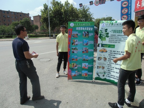 一天的实践活动结束了,志愿者们辛苦并快乐着,通过本次实践活动,让志愿者们深深的感受到当今幸福生活来之不易,是革命先烈用自己的血肉换来的,应倍感珍惜,用自己的实际行动回报社会,回报先烈。经过一下午的宣传普及使更多的人明白了环保和安全用电的重要性让志愿者们感到欣慰。(刘凯 夏尧尧)