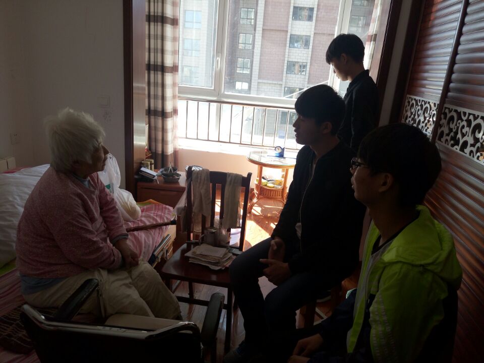 来到老年公寓,在工作人员的悉心安排之后我们便开始了我们的“工作”。干事们为老人们送上节日慰问品,并帮他们打扫卫生,陪老人们聊天话家常,听他们讲以前的故事,跟他们讲述学校里发生的有趣的事。养老院里老人们的温饱已经得到保证,但他们往往都缺乏亲情的沟通、心与心之间的交流,短短的一个下午,我们深切的感受到了老人们对亲情的渴望和对爱的期盼,干事们也暗下决心,以后有时间就多来陪陪老人。
