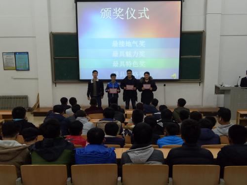 参加此次比赛的共有13组参赛人员,代表各自班级参加比赛,各自展现着自己家乡的特色方言。活动共分为三个环节,第一环节为参赛队员通过PPT展示自己的家乡特色。第二环节为选手们准备丰富的才艺表演,惟妙惟肖的表演使观众赞不绝口。第三环节为视频配音表演,选手们通过配音表演展示出各家乡方言的特色。整场比赛气氛热烈,激情挥洒,掌声经久不息,一次次将整个会场的气氛推向高潮。尤其是电气一班的房林选手语言幽默风趣而又饱含深意,给大家带来快乐的同时也不忘提醒大家,无论走到哪也不要忘掉故乡美,不要忘掉家乡人。最后大赛评出了最具特色奖,最接地气奖等多个奖项,大赛赛圆满结束。