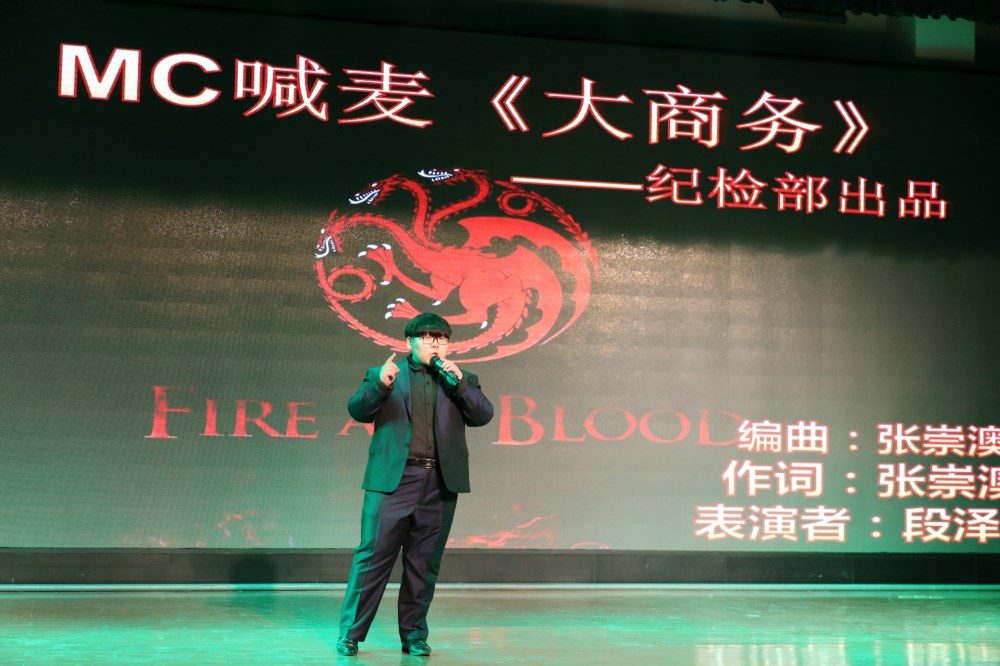 晚会6:30准时开始,热情的开场舞拉开了晚会的序幕。首先曲军书记代表系部全体教师为同学们送上新年的美好祝福。随后精彩的演出正式开始。动漫社的舞蹈惊艳全场,婀娜的舞姿引得台下观众尖叫连连。原创喊麦《大商务》新颖别致,独具一格,让人感受到了机电学子对商务不一样的情怀。令人捧腹大笑的小品表演《海选好声音》以其幽默风趣的台词、滑稽搞笑的动作引得观众们掌声阵阵,让观众乐不可支。整场晚会的节目内容流行与古典尽收,温情与火热并举,形式多样,精彩纷呈。舞蹈、歌曲、小品轮番上演,或浪漫温馨或轻快悠扬或风趣动人,风格各异,变幻多姿,令观众心旷神怡,沉醉其中。美好的时光总是匆匆而过,晚会最终在昂扬的旋律中完美落幕。