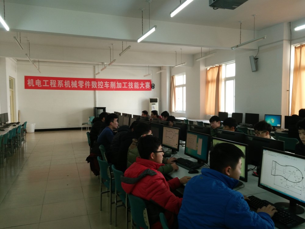 为进一步深化我院教育教学改革,提升教学质量,营造“崇尚一技之长”的校园竞赛氛围,促进学生职业能力养成,加强技能型人才培养,展示我院学生积极向上、奋发进取的精神风采和熟练的职业技能,2017年12月27日下午,机电工程系举办了数控车仿真加工技能竞赛,2016级机电设备维修与管理专业学生参加了本次竞赛。