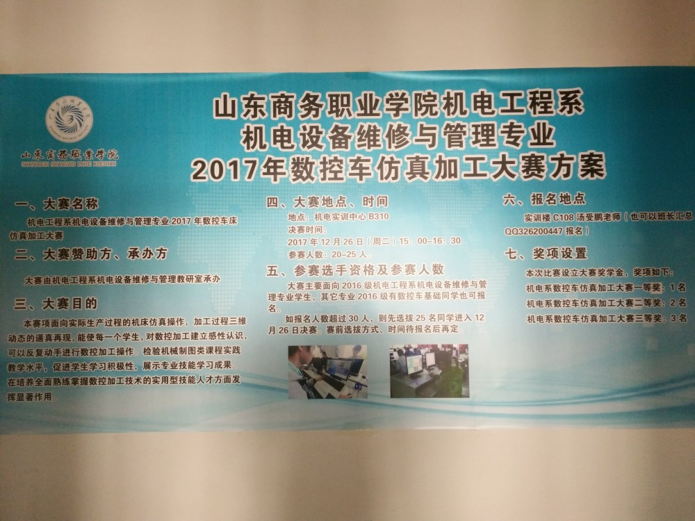 本次比赛旨在提高学生手动编程和数控车加工的技能水平,同时为选拔参加2018年全国和山东省数控机床维修与装调大赛成员做储备。大二学生报名热情很高,最终选拔29位同学进入决赛。