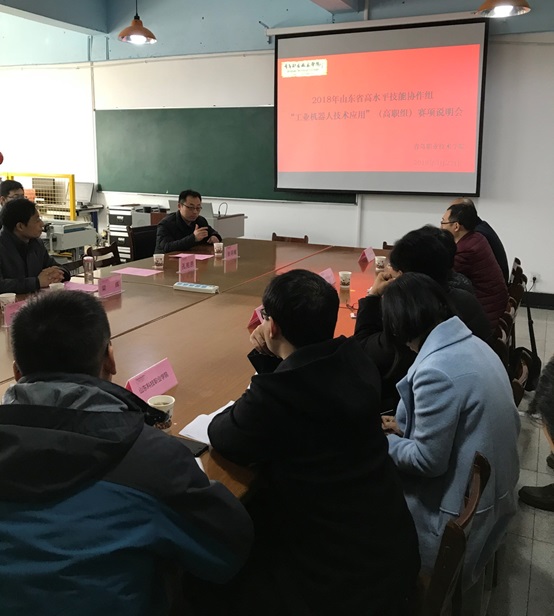 近日,2018年全国职业院校技能大赛“工业机器人技术应用”赛项山东赛区选拔赛说明会在青岛职业技术学院举行。该赛项由我校及青岛职业技术学院、山东科技职业学院、山东工业职业学院、烟台职业学院、潍坊工程职业学院六所院校协作筹备。机电工程系大赛指导教师苏令磊代表我校参加赛事说明会。