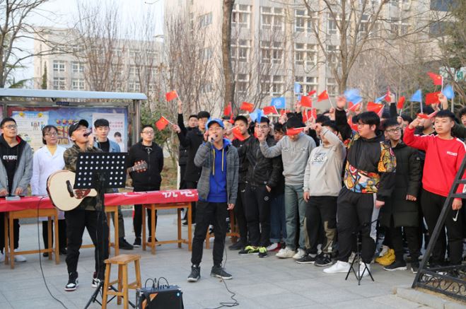 “我爱你中国,我爱你中国,我要把最美的歌儿献给你,我的母亲,我的祖国!”3月24日,在中心大道一首美妙动人的歌曲《我爱你中国》吸引了过往师生驻足,在高亢的歌声下,大家由驻足到吟唱,抒发着自己对祖国母亲的热爱。一曲唱罢,大家的爱国热情尚未退去,另一方一首动感十足的歌曲《健康动起来》又将现场的氛围推向高潮。