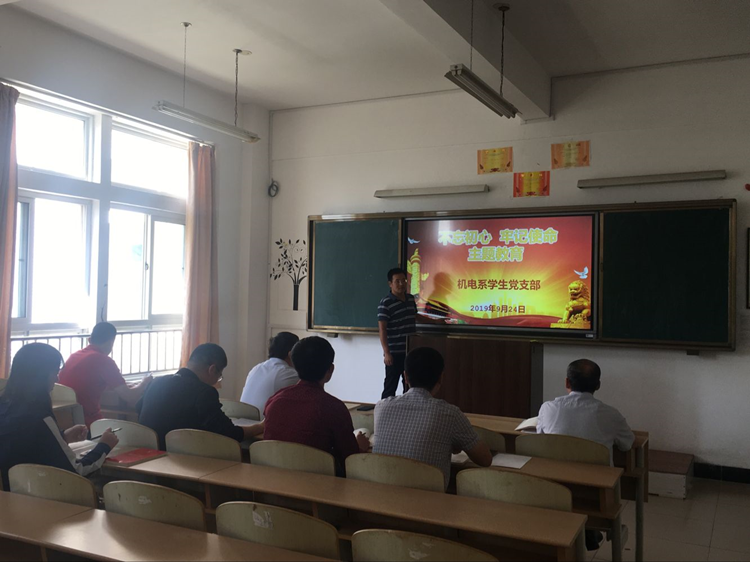 在“学、研、落”三字方针部署下,9月24日,机电系学生党支部在2号教学楼A221室,围绕“加强党的建设”“全面从严治党”两个专题深入推进“不忘初心、牢记使命”主题教育学习,创新学习形式,提升学习效率,增强学习效果。