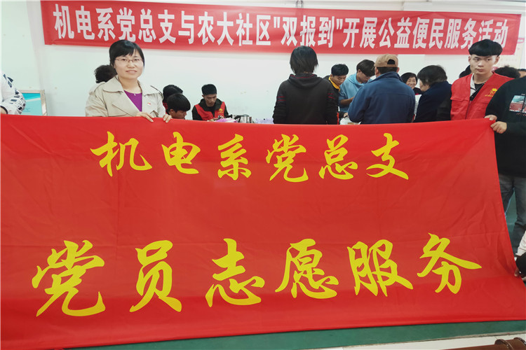 机电工程系扎实开展“不忘初心、牢记使命”主题教育工作,10月27日下午,机电系党总支与农大社区开展“党员进社区,服务暖人心”双报到公益便民活动。