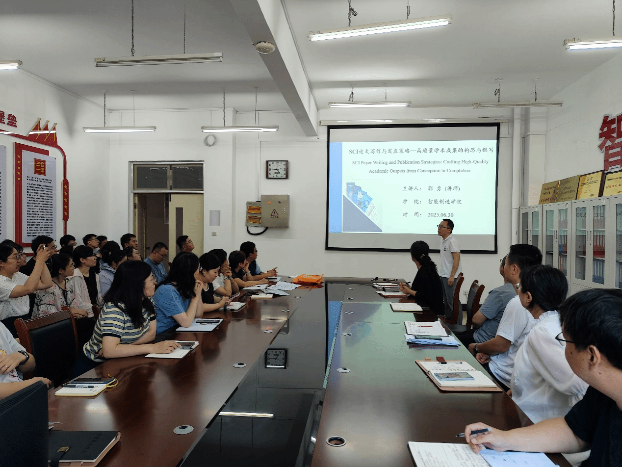 为深入贯彻落实学校科研强校战略,提升师生学术创新能力,助力高水平科研成果产出,6月30下午,智能制造学院在学院会议室举办“SCI论文写作与发表策略”专题学术研讨会。本次研讨会由智能制造学院郭勇博士担任主讲,学院领导班子全体成员、专任教师以及辅导员参加了此次学术活动。