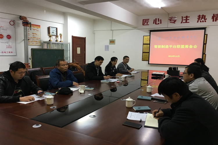 12月14日下午,“山东省职业教育智能制造类技艺技能传承创新平台联盟”筹备会在我校顺利举行。本次会议邀请到了山东省装备制造业协会常务副会长许世平、山东理工大学职教学院张峰副院长一行以及相关兄弟院校的领导专家。会议就省职业教育智能制造类平台联盟成立相关章程及事项等进行了探讨交流。