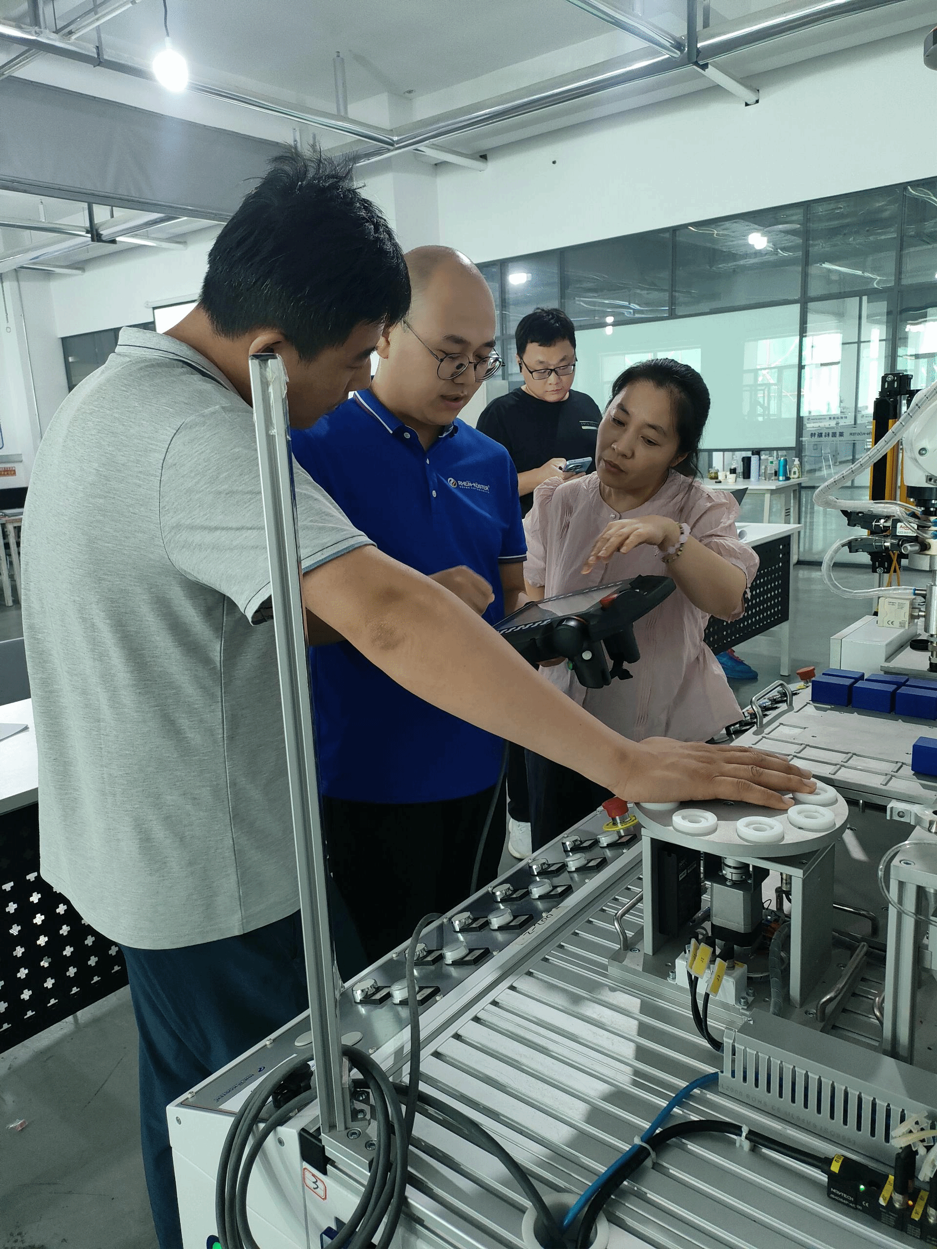 近日,智能制造学院三位骨干教师奔赴莱茵科斯特智能科技有限公司,参加中德先进职业教育合作项目工业技术及新技术专项培训。此次培训聚焦机器人应用基础课程,旨在增进教师在工业机器人领域的专业理论知识与实践操作技能,夯实师资基础,以期更有效地指导学生,进而提升教学品质,提升职业院校产教融合、校企合作与国际交流水平,打造高素质技术技能人才培养国际合作精品项目。