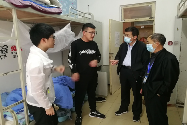 深入宿舍,关爱学生。5月31日上午,机电系党总支书记曲军和学管老师深入学生宿舍,看望已经返校的学生。来到宿舍后,老师们亲切地与同学们进行沟通交流,问同学们来到学校还适应吗,网课上得怎么样,有没有什么困难,一句句简单的话语却温暖了返校学子的心田。18机制一班王同学说道:“感谢学校老师为返校学生的辛苦付出,无论是老师迎着太阳在车站接站,班主任老师大清早在东门等候我们,还是老师来宿舍看望我们,都让我们的心里好暖好暖……”。