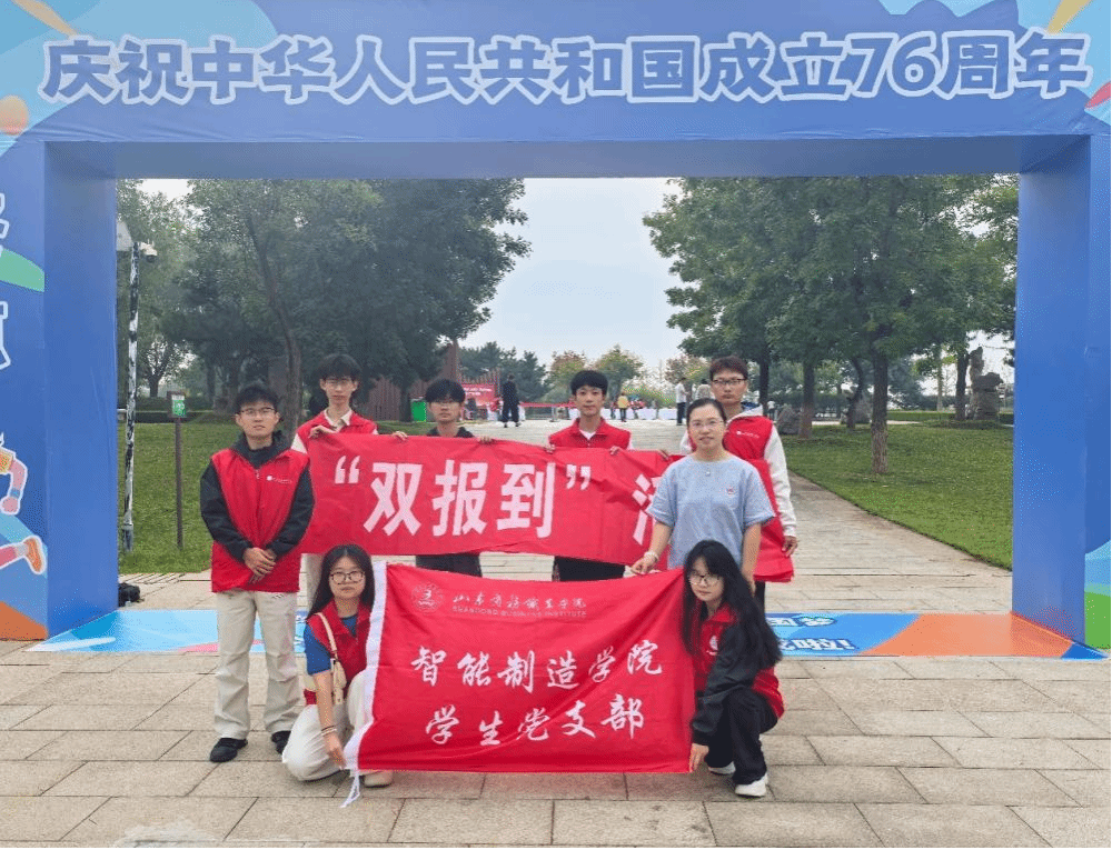 近日,智能制造学院党员先锋队党员代表,带领学生志愿队赴辛安河“庆祝中华人民共和国成立76周年烟台高新区职工健步行”活动现场,开展志愿服务活动并进行“国旗下合影”打卡,将爱国热情转化为服务社区、奉献社会的实际行动。