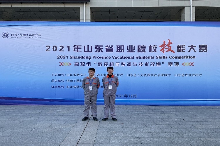 12月27-30日,山东省职业院校技能大赛高职组“数控机床装调与技术改造”赛项在济南工程职业技术学院举行,全省共有19支代表队的38名选手参加比赛。经过三天激烈角逐,由我校智能制造学院许宏阳、高雅楠两位老师指导,周宁、孟维凯两位选手组成的山东商务职业学院代表队荣获一等奖第2名的优异成绩。