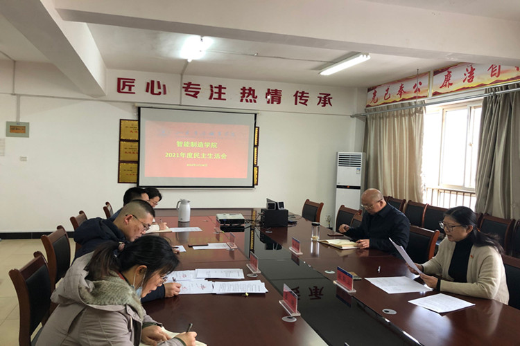 1月24日上午,智能制造学院召开2021年度党史学习教育专题民主生活会,学校副院长陶传蔚同志到会指导,智能制造学院党总支班子成员、副科级及以上干部、各党支部委员参加会议。