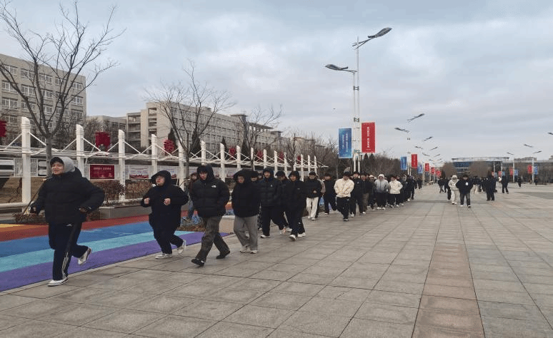 在中心大道上,同学们身姿挺拔、队列整齐,没有散漫,没有懈怠,每一个人都以最饱满的状态投入到早操之中。冬日的清晨虽冷,却挡不住青年学子的热情与活力,大家步调一致,精神昂扬,在有序地行进与锻炼中舒展身体、唤醒活力,用整齐的步伐踏出青春的节奏。