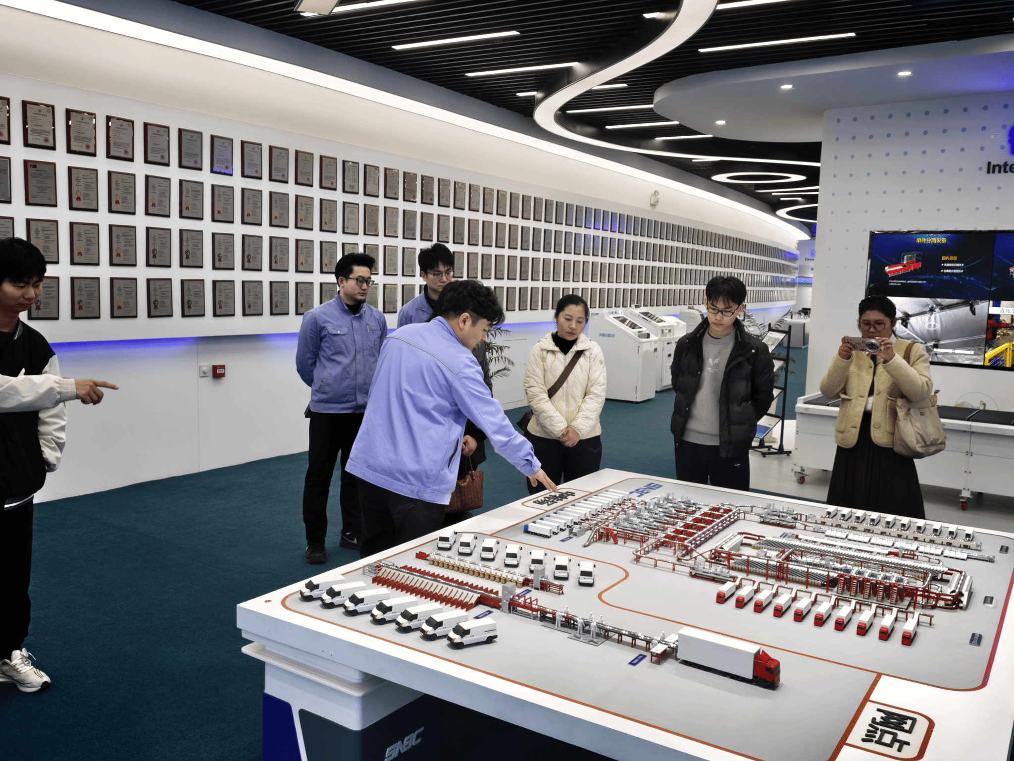 在企业负责人的带领下,教师与学生代表参观了企业展厅。展厅内,通过图文展示、实物陈列及技术讲解,大家系统了解了威海正棋机器人股份有限公司的发展历程、核心业务、技术优势及未来规划。