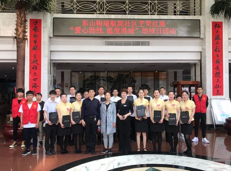 在全国第29个助残日到来之际,山东商务职业学院机电工程系和东山街道航院社区志愿者一起来到烟台虹口大酒店,走访慰问残疾职工,为他们送去生活用品和温暖,鼓励他们要自强、自立,用自己的双手创造美好生活。
