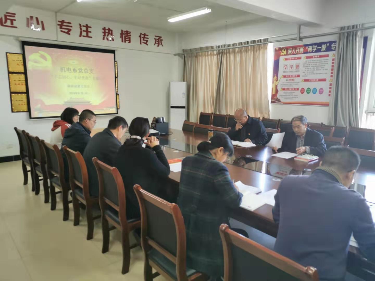 征集调研题目,扎实开展调研。机电系党总支高度重视本次调研成果交流会。会前,各位班子成员围绕“不忘初心、牢记使命”主题教育工作安排,制定了机电系党总支领导班子调研方案,积极进行了调研题目征集,开展深入调查研究,掌握实情,分析问题,研究对策。
