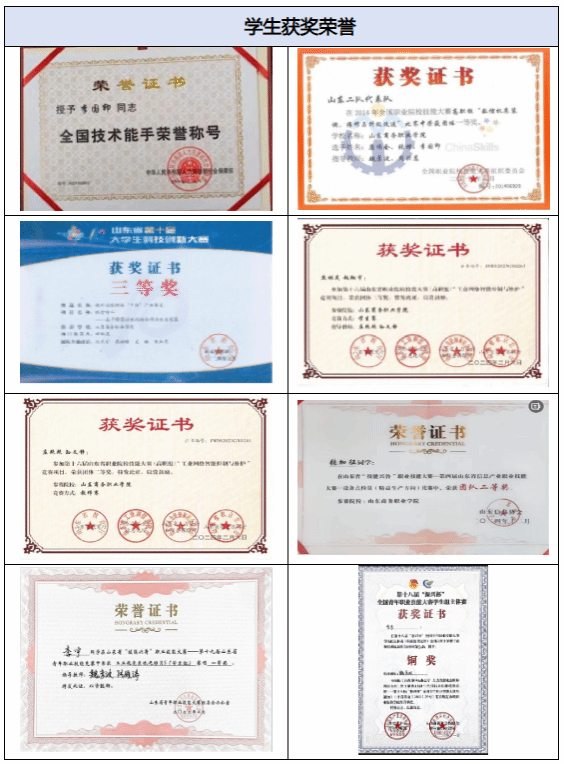 成果荣誉:机电教学团队教师凭借专业素养与创新精神,在院部平台和名师工作室助力下,荣获山东省职业院校技能大赛“数控机床装调与技术改造(教师组)”赛项一等奖、“工业网络智能控制与维护(教师组)”赛项二等奖等多项荣誉;指导学生参加职业技能大赛获奖30多次。荣获山东省高校教师教学比赛二、三等奖各1项,建设山东省精品课程2门;发表相关论文30余篇、教科研成果20余项,申报国家专利10项。